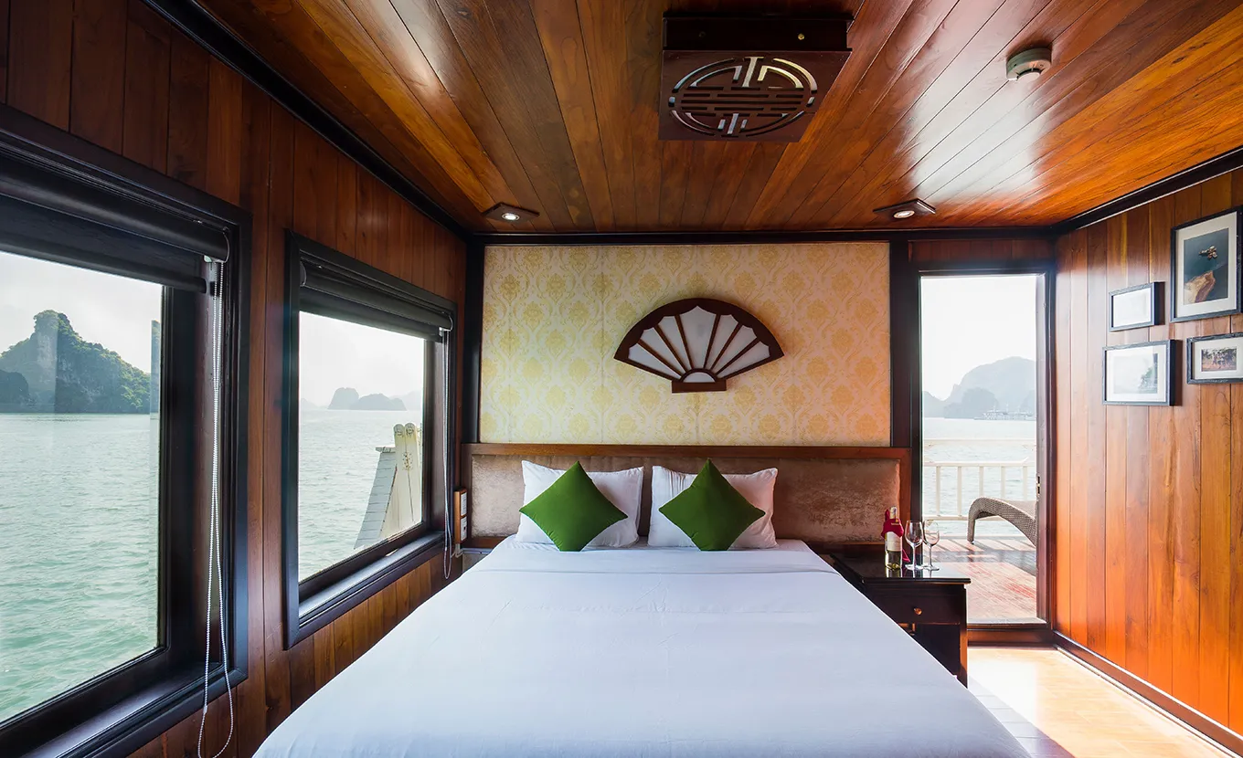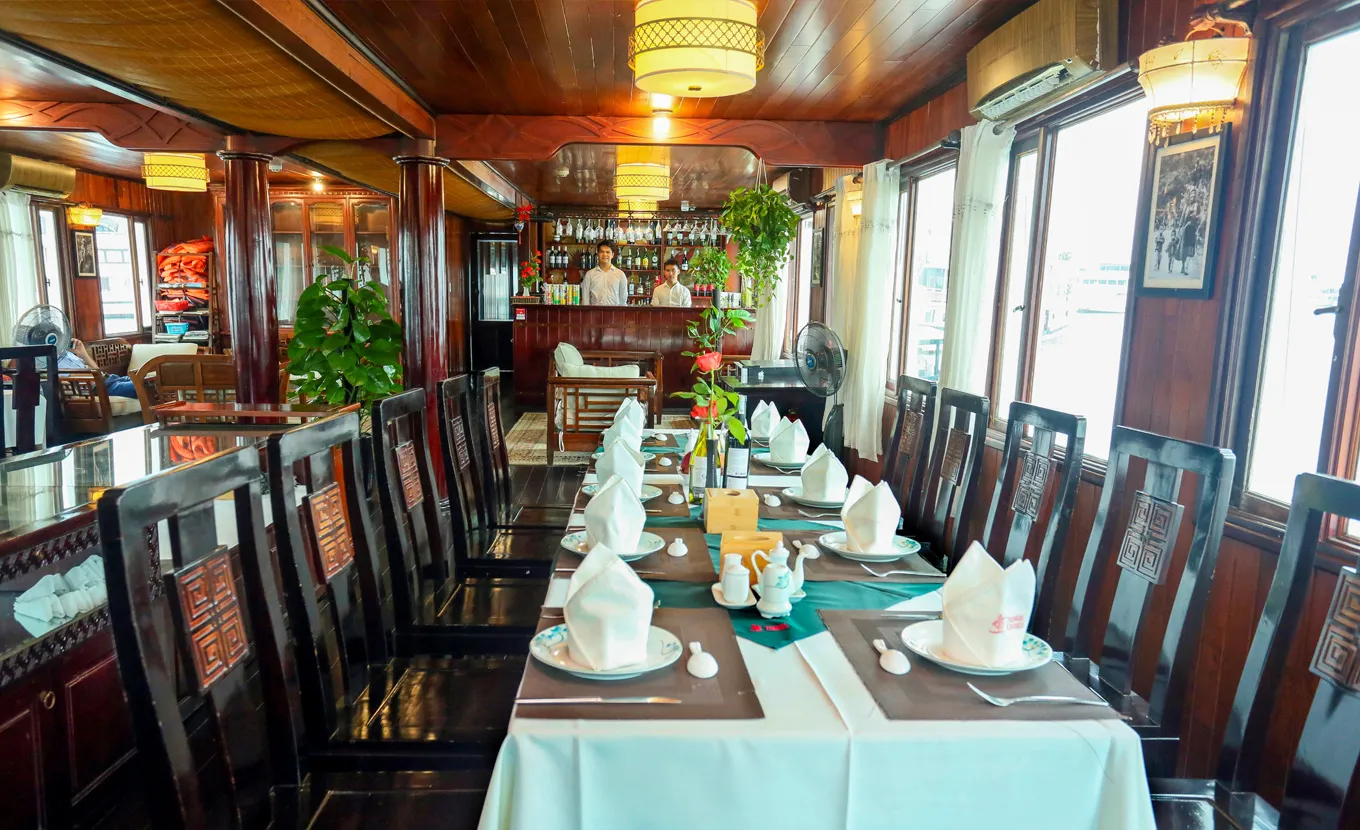 Dieses Schiff vereint Komfort und Stil, wobei einheimisches Holz, Marmor und Kupfer verwendet wurden, um ein charmantes traditionelles Design zu erhalten. Es bietet nur 10 bzw. 18 voll ausgestattete Kabinen sowie ein geräumiges Restaurant und ein großes Sonnendeck. Die Garden Bay Legend Cruise kreuzt durch die Bai Tu Long Bucht, ein im Vergleich zur benachbarten Halong-Bucht weniger überlaufenes Juwel, und verspricht ein einzigartiges und authentisches Erlebnis für eine kleine Gruppe von Reisenden.