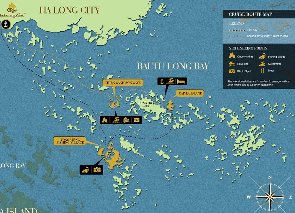 13:30 – 15:00 : Mittagessen auf der Fahrt zur herrlichen Bucht von Bai Tu Long; bewundern Sie die faszinierenden Formationen auf dem Weg.