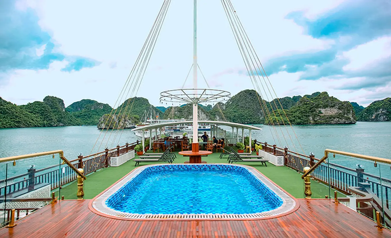 Die Calypso-Yacht zeichnet sich durch ihre luxuriöse weiße Farbe in der Bucht von Lan Ha. In 2 Tagen 1 Nacht werden Sie vom Kapitän und den Matrosen an Bord herzlich willkommen geheißen. Frische Seele in die wunderschöne Natur mit tausenden von grünen Kanälen und vielen Inseln tauchen und die exquisite Küche genießen...wird ein unvergessliches Erlebnis in Ihrem Leben sein.