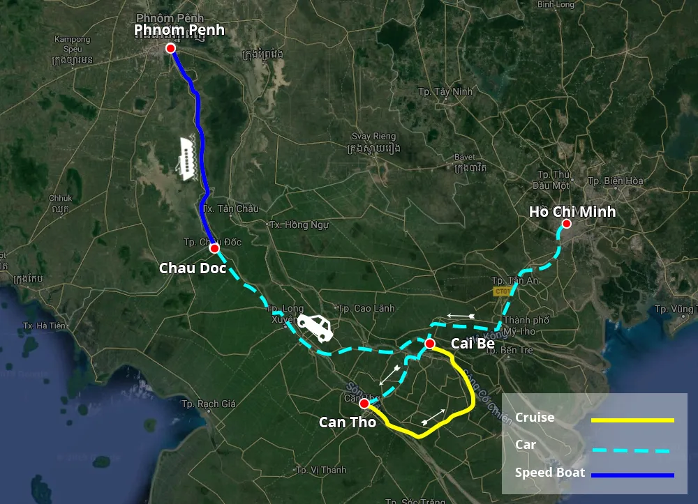 7:30 AM: Wir holen Sie vom Hotel in Saigon (Stadtzentrum - Distrikt 1) in Richtung Mekong-Delta ab. Genießen Sie die Kulisse mit friedlichen Landschaften, kleinen Städten, ineinander verschlungenen Dörfern in Harmonie mit den Flüssen und grünen Feldern und Obstgärten. Bei Ihrer Ankunft werden Sie an der Rezeption herzlich willkommen geheißen.