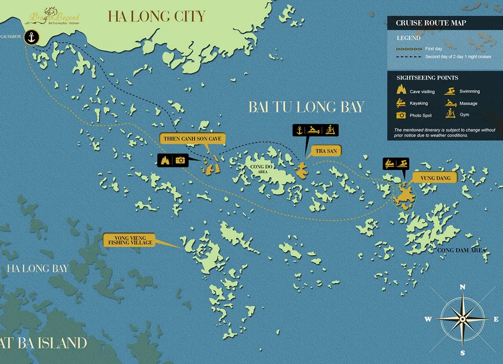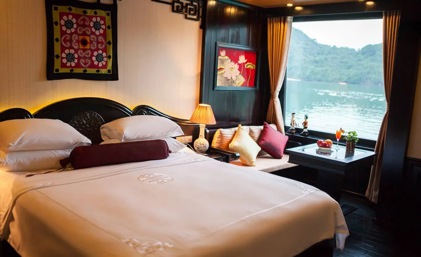 Los 2 barcos de Dragon Legend son los miembros más recientes de la flota de Indochina Junk, marcando con orgullo los más altos estándares de construcción. Cada barco Dragon Legend cuenta con 24 cabinas de lujo, 4 cubiertas con restaurantes tanto en el interior como en el exterior, un spa, un bar, una zona de solarium y otras opciones de entretenimiento. Un viaje de dos días le llevará a las profundidades de la maravilla de la naturaleza y a la experiencia de un viaje memorable a la majestuosa bahía.