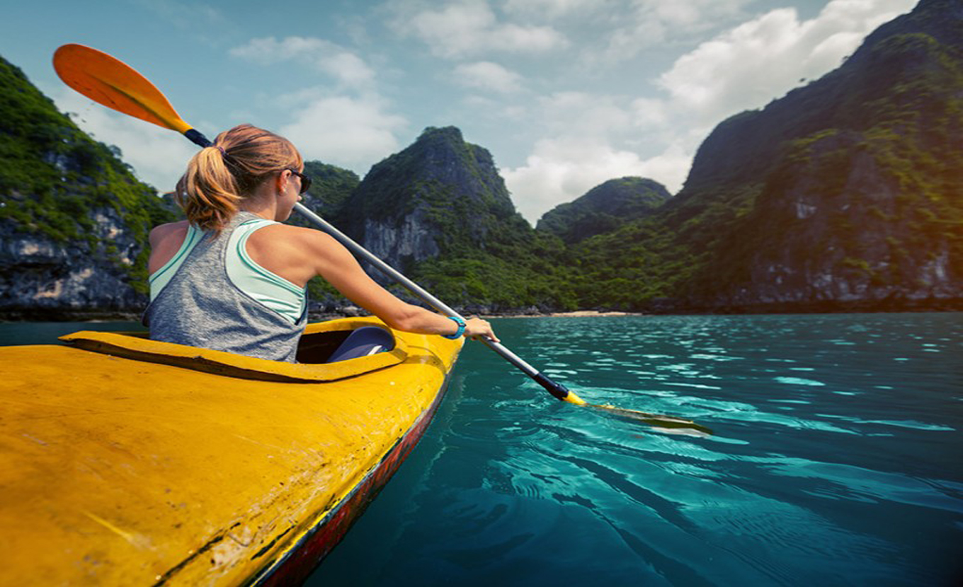 15:00: Continuamos la exploración de la Bahía de Halong.Tendremos 45 minutos para navegar en kayak por la zona de la Aldea de la Granja de Perlas. Después del kayak tenemos 2 opciones para continuar su viaje (Depende de cada día específico y la temporada sólo se elegirá una opción): OPCIÓN 1: VISITAR LA ISLA DE LOS TITOP PARA NADAR
