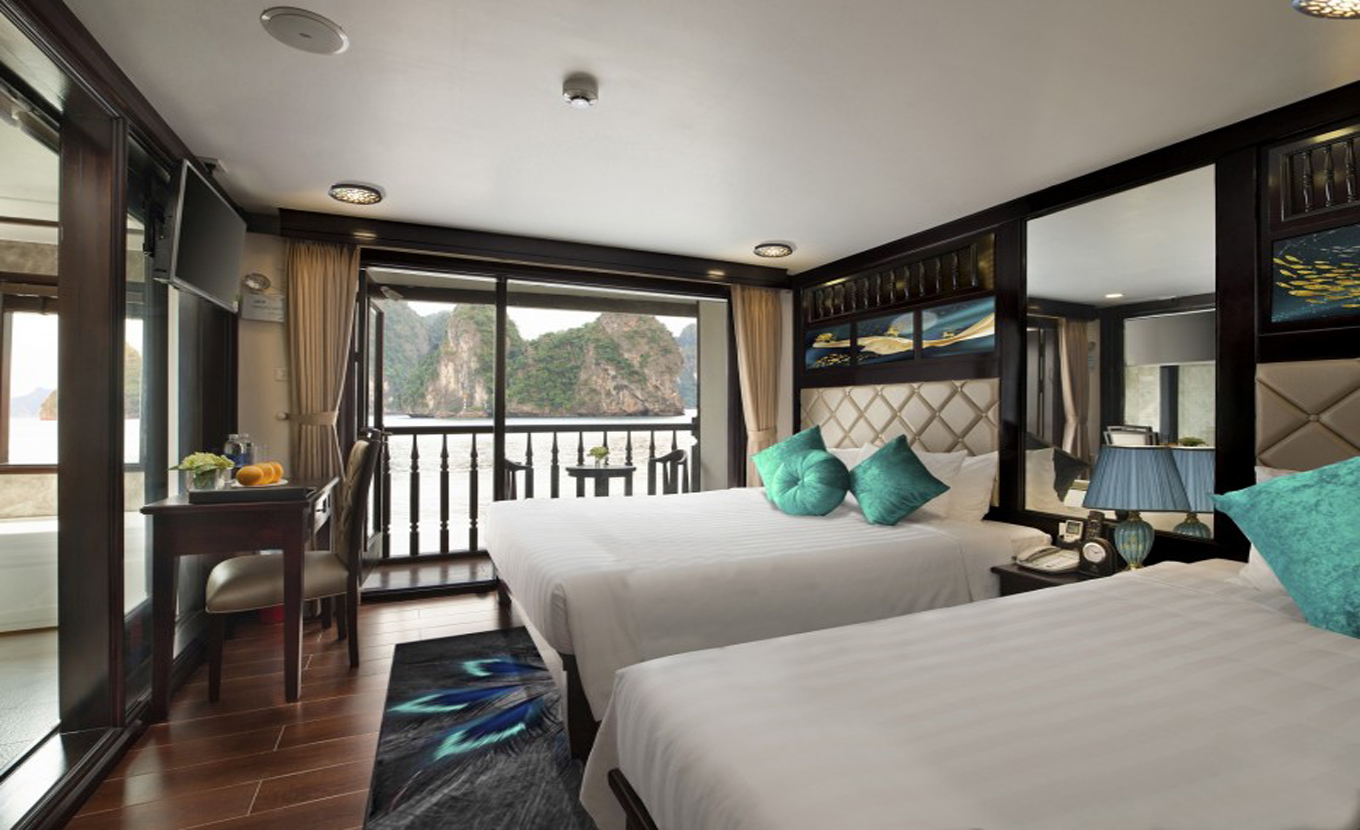 12:00- 14:00: Llegada al puerto de Tuan Chau, descanso y bebida de bienvenida en el Salón de Cruceros Alisa antes de embarcar en el Crucero Alisa. Bienvenidos a Alisa Cruise, disfrutamos de un cóctel de bienvenida mientras nuestro gerente de crucero da una breve introducción, las directrices de seguridad sobre Alisa Cruise. Registro en su camarote y el barco comienza a explorar la bahía de Halong - una de las nuevas siete maravillas de la naturaleza. Disfrutamos de un almuerzo con platos vietnamitas e internacionales servidos mientras navegamos por la magnífica bahía de Halong, admirando las fascinantes formaciones rocosas de la bahía.