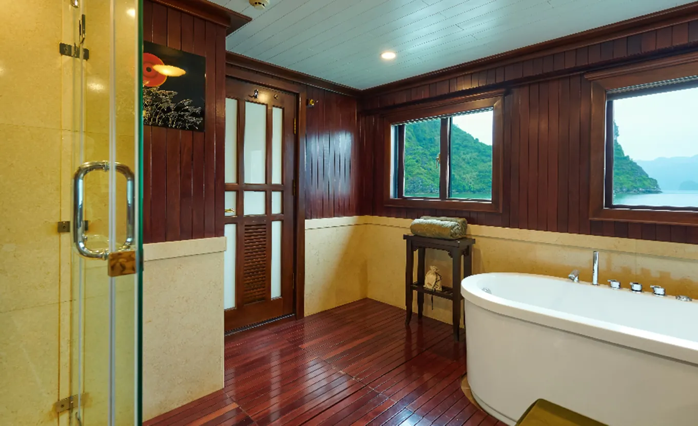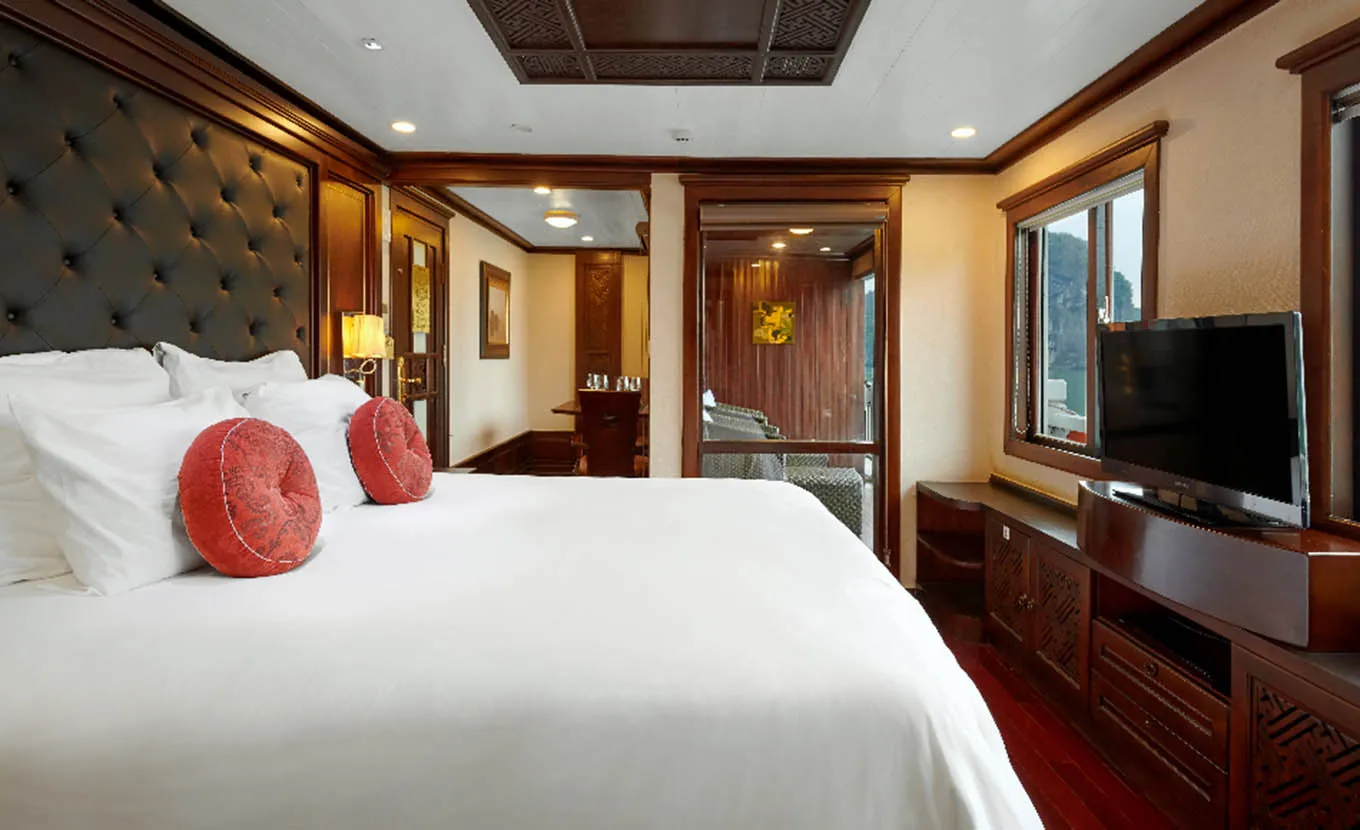 Paradise Peak es el barco más lujoso que navega por la bahía de Halong. Combinando opulencia, confort y discreción, el barco de madera de alta gama no sólo cumple sino que supera las expectativas