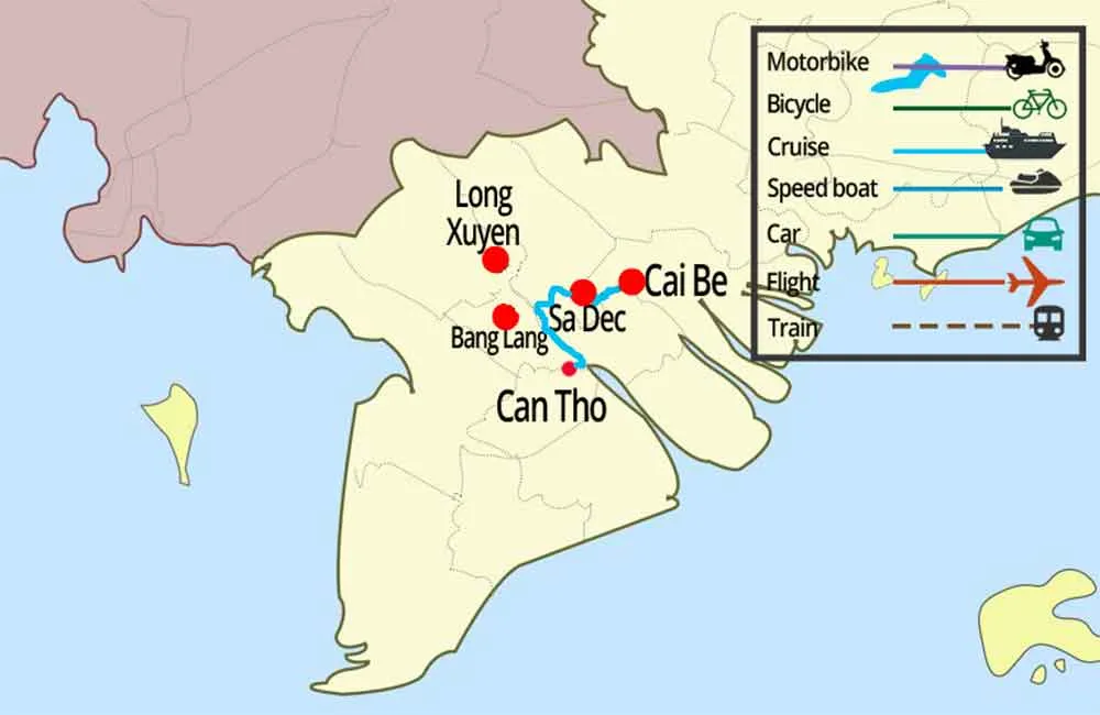Disfrute de un crucero de 2 días a lo largo del río Mekong que empieza en Cai Be, pasa por Sa Dec y termina en Can Tho en un auténtico sampan privado de Song Xanh. Explore la vida local y las bellezas del río Mekong.