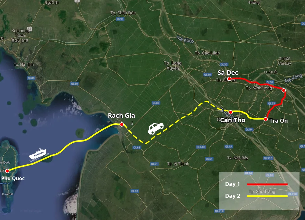Gecko eyes offre un servizio speciale di barca privata con un itinerario unico: esplorazione dei punti salienti del delta del Mekong e fino a Phu Quoc - il paradiso della fuga dalla spiaggia. Durante il viaggio avrete la possibilità di interagire con la gente del posto, assistere alla tranquillità della campagna.