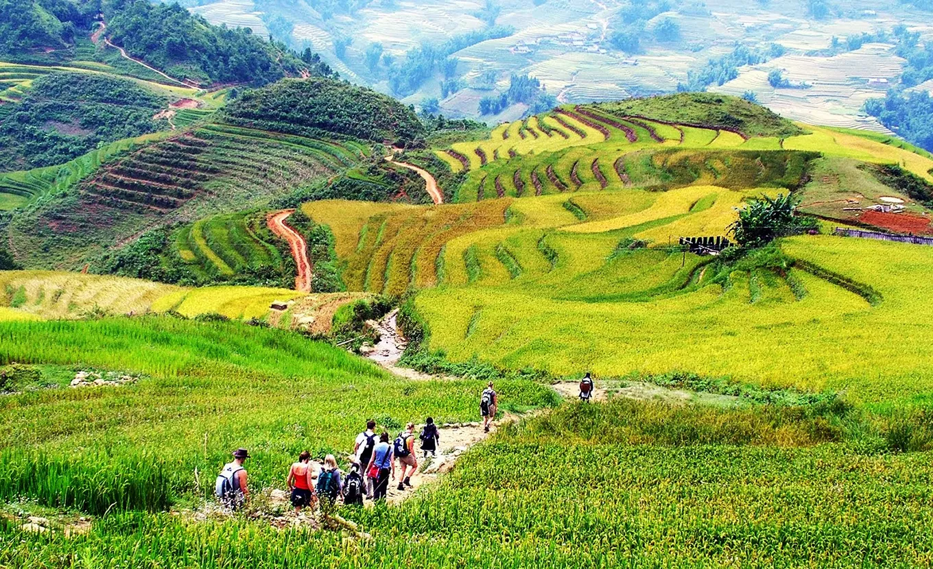Al mattino, inizieremo la nostra giornata di autentico trekking su un percorso che parte dal villaggio di Ta Phin. Questa terra pacifica è stata scelta dal popolo del Dao Rosso quando è immigrato in Vietnam dalla Cina dal XVII secolo. Seguendo un piccolo sentiero di collina si possono vedere molti giardini di orchidee che forniscono anche le più grandi richieste delle città per le decorazioni di Capodanno. Verso il villaggio di Ban Khoang, camminate attraverso la fattoria di mais fino alla foresta pluviale con una vista mozzafiato sulle terrazze di riso. Durante la stagione, si può vedere la gente del posto e i bufali che lavorano sul campo.