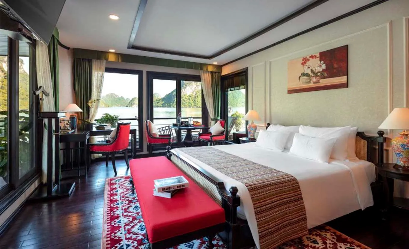 Orchid Premium Cruise oferece apenas 05 suítes grandes e exclusivas com o máximo de privacidade para sua viagem de cruzeiro pela Baía de Halong. Todas as cabines são bem projetadas, com grandes janelas panorâmicas que se abrem para o mar, para que você possa desfrutar de sua própria Baía de Halong - Baía de Lan Ha a partir de sua varanda privativa, o que garantirá uma lembrança inesquecível de nossa lendária paisagem.