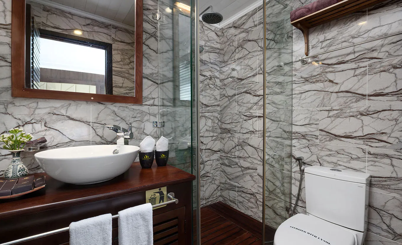 Transfer by tender to Sung Sot Cave. Walk up about 100 steps to the cave entrance. It takes approximately 45 minutes to visit Sung Sot Cave, one of the biggest caves in Halong bay with beautiful stalactites and stalagmites. Return to the cruise by tender. Check out and settle your bill at reception.