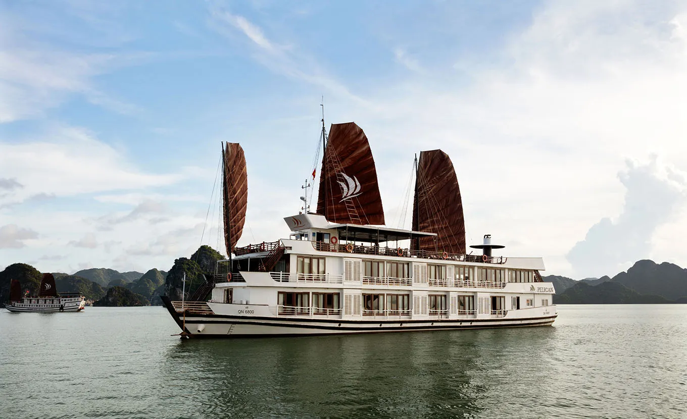 Evening activities include: Leisure time to enjoy a chat around the bar, watching movies and many sort of Vietnam cultural films, relaxing and spending a romantic night on Pelican Halong Cruise’s music, playing cards, chess are available, reading magazines in room and dining room. You may also try your luck at squid fishing & fishing from the boat.