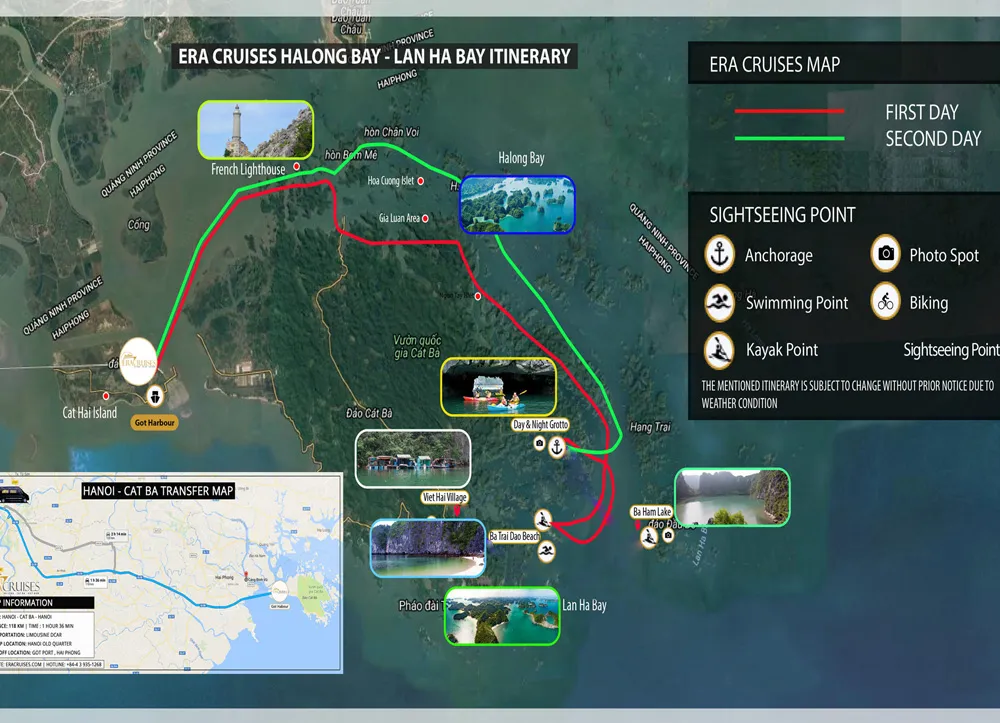 Welcome by driver at the harbor then enjoy 2 and a half hour travel back to Hanoi on the new highway No5B crossing the Red River Delta and villages. Drop off at your hotel (in the Hanoi Old Quarter).