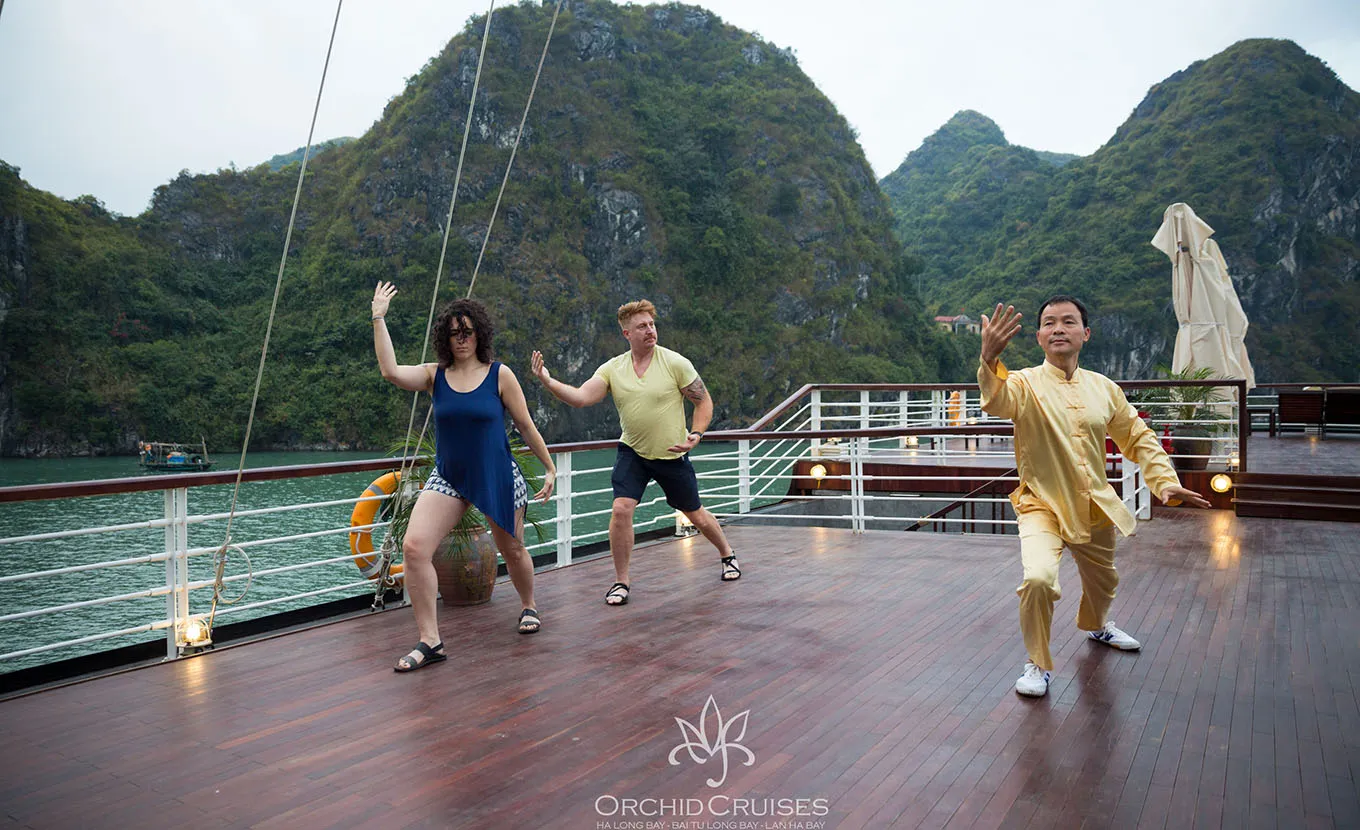 06:30: It is a perfect time to refresh and indulge yourself in a peaceful beauty of the bay with a tai chi session on sundeck. If you want to hunt for dawn, get up from 5:30 to 6:00 depending on the season, consult our sailors.