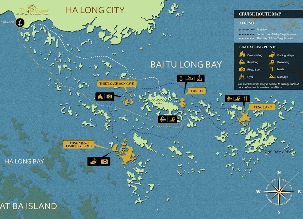 Nouveaux membres de la flotte de l'Indochine, les jonques Dragon Legend sont conçues avec des normes de première qualité. Chaque jonque de Dragon Legend dispose de 24 cabines de luxe, 4 ponts avec restaurant à l’intérieur et en plein air, spa, bar, terrasse et d’autres options de divertissement. L'excursion de 3 jours est idéale pour vous plonger au cœur de cette merveille de la nature avec notamment une nuit mémorable dans la baie majestueuse.