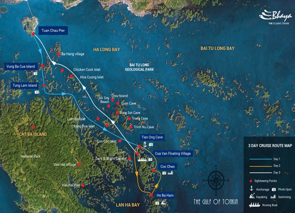 Une croisière de 3 jours à bord de la jonque Bhaya vous permet d'admirer la merveille naturelle classée au patrimoine mondial qu’est la baie d'Halong. L’évasion dans un monde marin unique avec d’innombrables formations karstiques surgissant d’une eau émeraude laissera dans vos mémoires des souvenirs inoubliables. Cette excursion vous offre un meilleur choix d’explorer l’une des meilleures destinations du Vietnam.