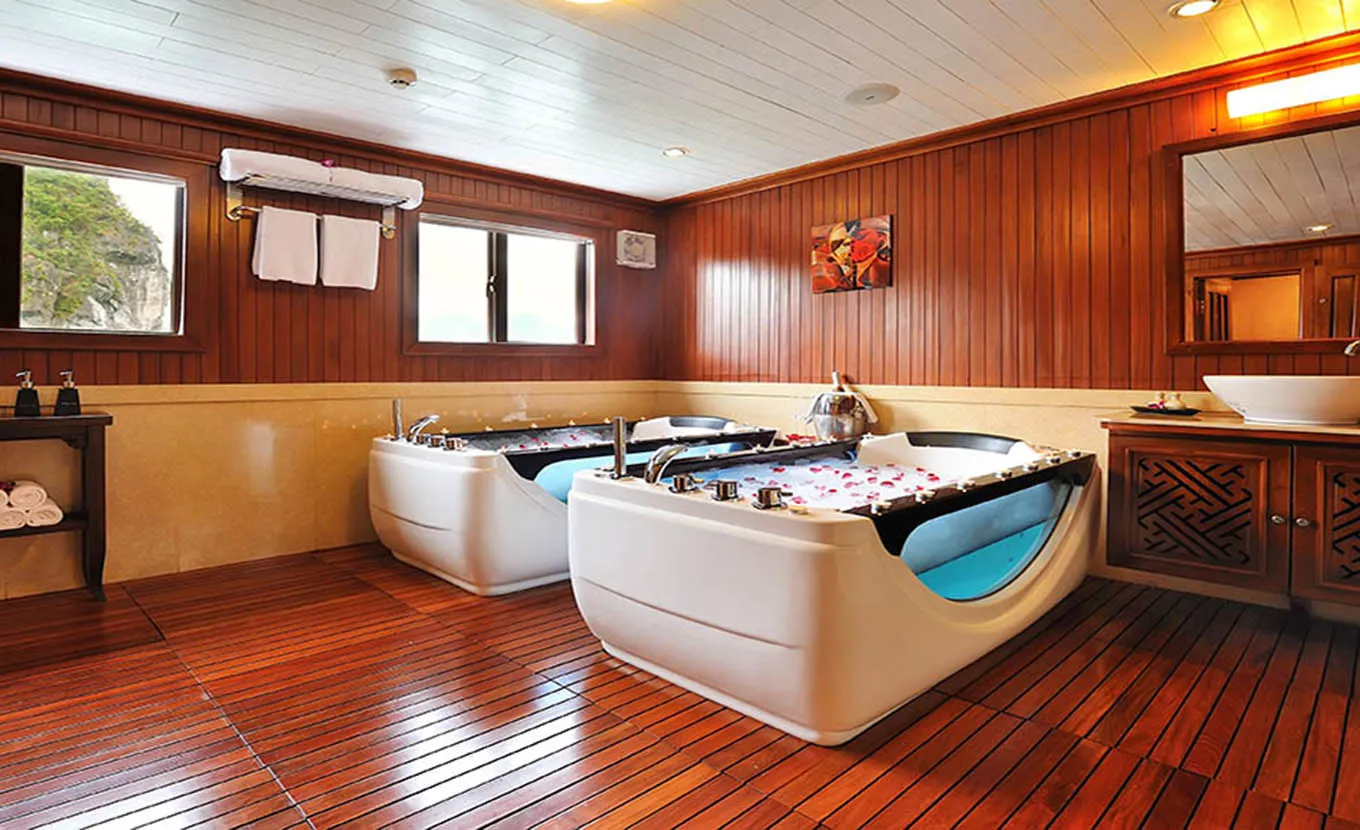 14h00: Après le déjeuner, c’est l’heure de vous relaxer en admirant la beauté intemporelle de la baie d’Halong alors que Paradise Peak navigue à travers les îles calcaires et les îlots. Vous pouvez vous offrir aussi un soin au spa ”Le Parfum Spa”.