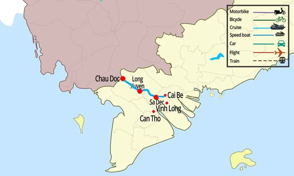 Le petit-déjeuner est servi à bord durant la navigation vers Long Xuyen le long d'un canal étroit, en passant par de pittoresques ponts de singes. Après déjeuner à bord, dirigez-vous vers Long Xuyen pour visiter l'île du Tigre, lieu de naissance du deuxième président du Vietnam. Retournez sur la jonque pour le dîner et poursuivez votre croisière vers Chau Doc. La jonque navigue jusqu'aux alentours de 22h00 avant d’atteindre le lieu de mouillage pour la nuit. Nuit à bord.