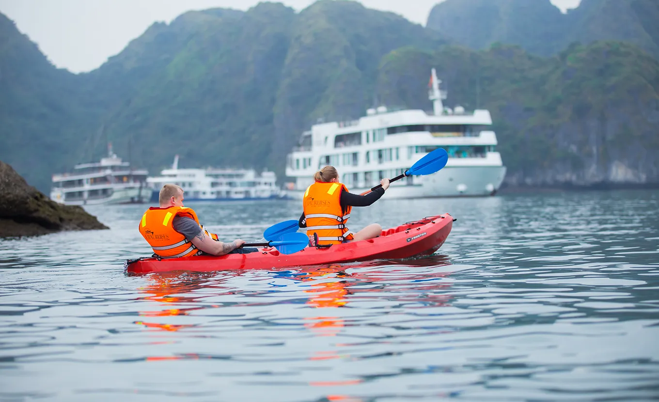 15h00: La dernière étape de la croisière nous emmène traverser le secteur de Cua Van jusqu'à la baie de Lan Ha (partie de la baie d'Halong). L’endroit aura de quoi vous séduire par ses quelques 300 îles et formations karstiques magnifiques mais aussi des plages blanches immaculées. Vous pourrez explorer la plage de Trois Pêches en kayak ou vous baigner dans les eaux cristallines.