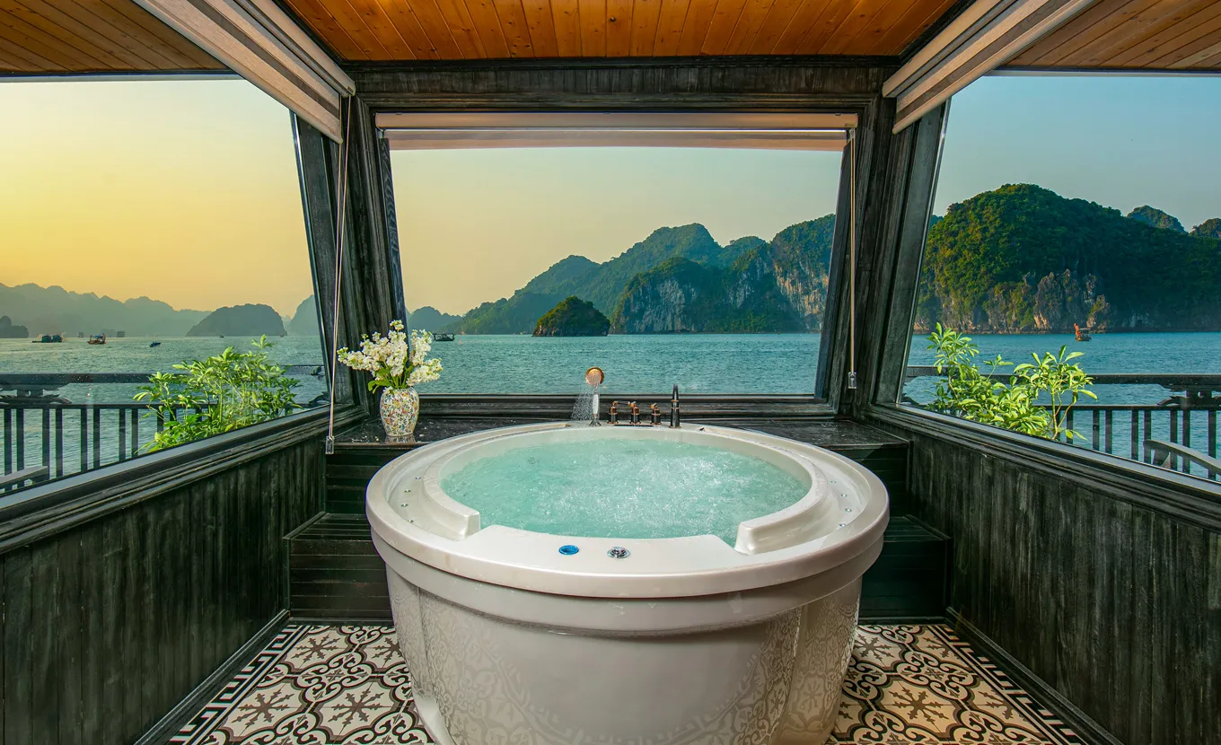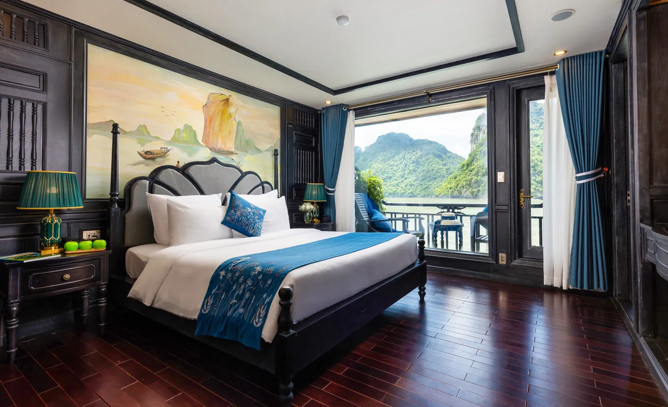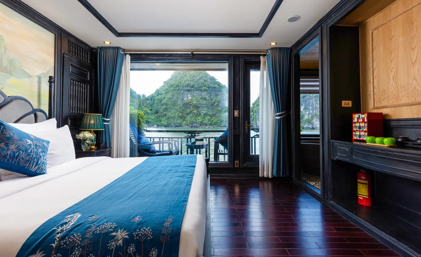 La Regina Grand adopte un design qui rappelle l'Indochine coloniale des années 1930, avec une esthétique intemporelle et sophistiquée. Avec ses 27 suites spacieuses, chacune dotée de fenêtres allant du sol au plafond et de balcons privés, la croisière La Regina Grand offre à ses passagers une vue panoramique imprenable sur la baie de Lan Ha. Chaque cabine est un havre de tranquillité, alliant harmonieusement l'élégance classique au confort et au luxe modernes. L'expérience est rehaussée par un service impeccable et personnalisé, garantissant une retraite sereine et luxueuse.