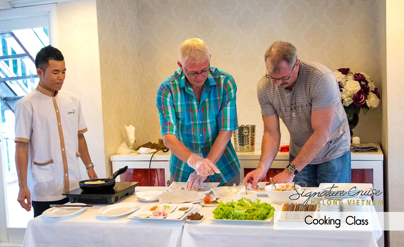 Signature Cruise tem orgulho de oferecer instalações de alta qualidade e serviços especiais aos clientes. Vamos nos juntar ao Signature Cruise para descobrir cenários espetaculares ao redor da Baía de Tonkin, incluindo a Baía de Halong, a Baía de Lan Ha, a Baía de Bai Tu Long, etc.